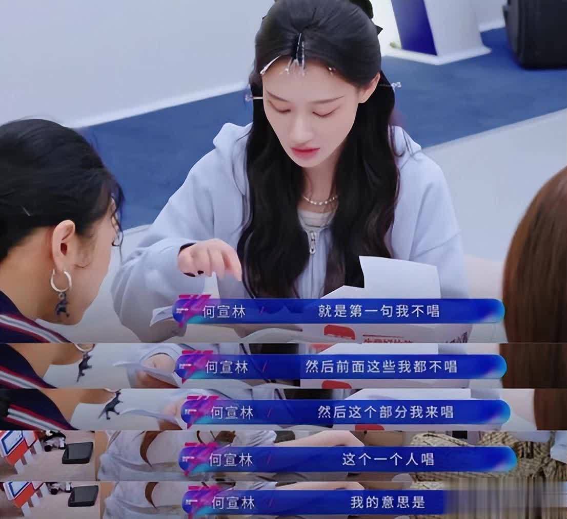 看似是为了舞台整体效果更好,但是这样安排的违和感在于,何宣林自己不想唱的段落给到了唐艺昕,而自己选了整段副歌要求一个人唱。