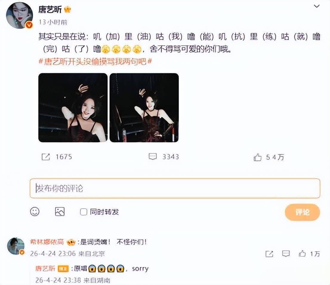 以至于唐艺昕“叽里咕噜”的唱完开头的两句,立刻被网友调侃“唐艺昕开头没偷摸骂我两句吧”。