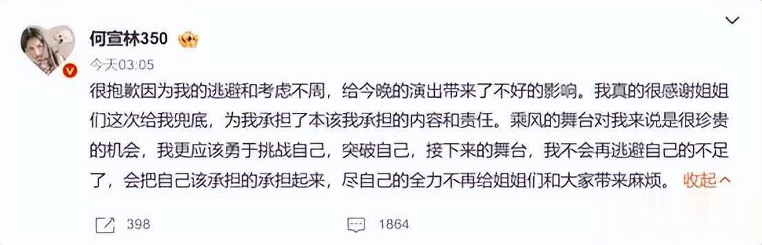 赛后凌晨何宣林也发布了动态,道歉、感谢、表决心,虽然舆论还在发酵,但是她的回应也算是给这场风波画上句点。