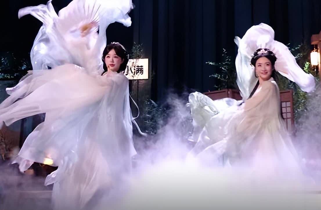 她们的国风舞台《冷夜》太美了,尤其是陶昕然与徐梦洁双人舞的桥段,裙摆、衣袖随着旋转的动作翻飞,轻盈灵动。